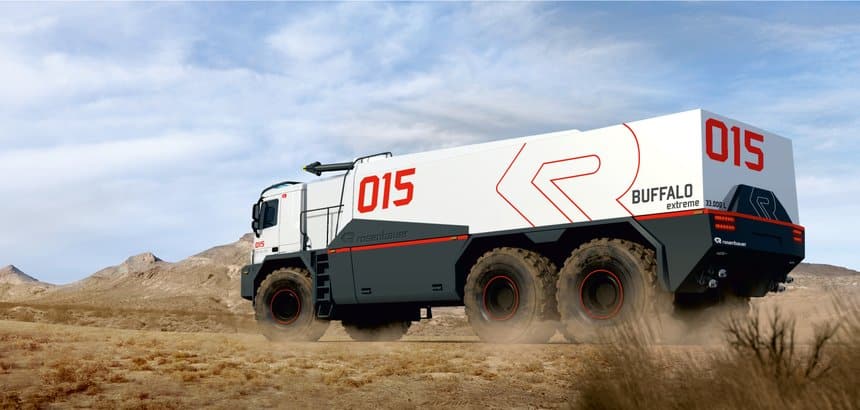 Il a été créé par l’Autrichien Rosenbauer pour les zones d’accès difficile, éloignées de tout et dépourvues de raccordement à un réseau d’alimentation en eau – comme les mines à ciel ouvert ou certaines infrastructures pétrolières. Son châssis, hors-code, a été fourni par la société allemande Paul Nutzfahrzeuge, connue pour ses transformations sur base Mercedes. Sa cabine est d’ailleurs dérivée de celle de l’Actros et son moteur est un V8 Mercedes (Euro 3) de 571 ch, associé à une boîte de vitesses automatique Allison. Sa pompe peut débiter 6 500 l/mn sous 10 bar de pression et il est équipé d’un canon eau/mousse télécommandé.