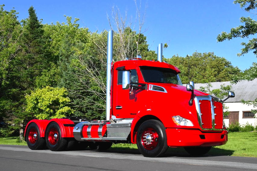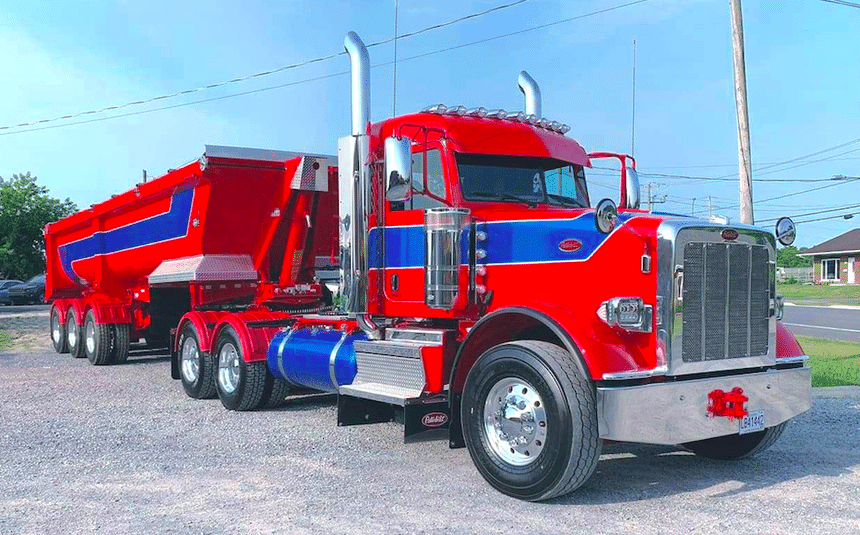 Mais si vous 锚tes un inconditionnel du style flashy, voici tout de m锚me de quoi r锚ver avec, toujours au Qu茅bec, un T680 joliment 芦聽pimp茅聽禄 et un Peterbilt pour le moins color茅, semi benne comprise, pr茅par茅 par PJF.