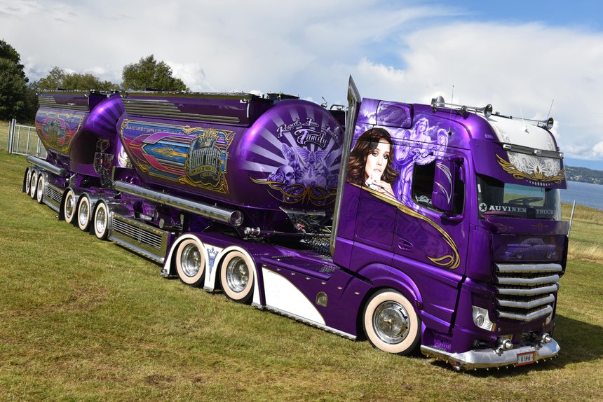 Le camion le plus incroyable qui me vient en tête, c’est le Mercedes Lowrider de Mika Auvinen, un transporteur finlandais. Cet Actros est probablement le plus marquant des camions européens, car il dispose de plus de 300 pièces réalisées sur mesure, des pneus à flanc blanc, des enjoliveurs spéciaux qui évoquent les jantes à bâtons… Ce projet est incroyable, et le plus fou, c’est qu’il circule quotidiennement !