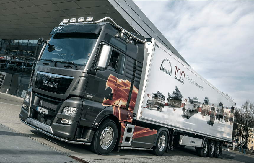 Cent ans déjà. C’est en effet en 1915 que MAN a produit son premier camion. Pour célébrer l’événement, le constructeur a créé une série spéciale, diffusée dans toute l’Europe, basée sur le tracteur TGX D38 de 520 ch ou 560 ch. Livrée spectaculaire, accessoires « custom » et équipements de confort complets distinguent ce « jeune centenaire ». Les premiers exemplaires devraient être livrés en juillet.