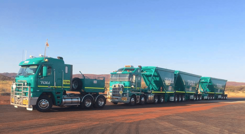 La compagnie de transport Toll a mis en place sur cet itinéraire son propre service afin que ses camions miniers puissent traverser la Marandoo Hill malgré un PTR de 170 t, leur évitant ainsi un long et coûteux détour. Au-delà, et jusqu’à 245 t, la réglementation impose l’emploi d’un deuxième block truck.