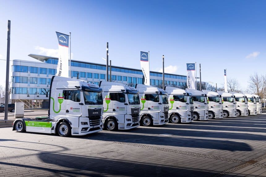 Après la remise officielle des dix premiers véhicules, en la présence de Friedrich Baumann, membre du conseil d’administration pour les ventes et les solutions clients chez MAN Truck & Bus, et de Cyrille Bonjean, vice-président exécutif du transport terrestre chez DB Schenker, les conducteurs ont eux-mêmes transféré leurs nouveaux camions vers plusieurs sites du transporteur en Allemagne.