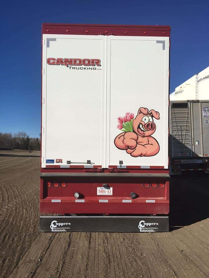 Eh oui, la semi en question est une bétaillère ! Mais pas n’importe laquelle, une cochonnière, spécialement importée de Hollande où le grand spécialiste local, Cuppers Carrosserieën, l’a préparée pour Rob Kleen, un client canadien. Elle peut embarquer un peu plus de 250 porcs gras dans des conditions de confort et de sécurité maximales éliminant le stress du voyage ce qui est une garantie de qualité à l’arrivée.