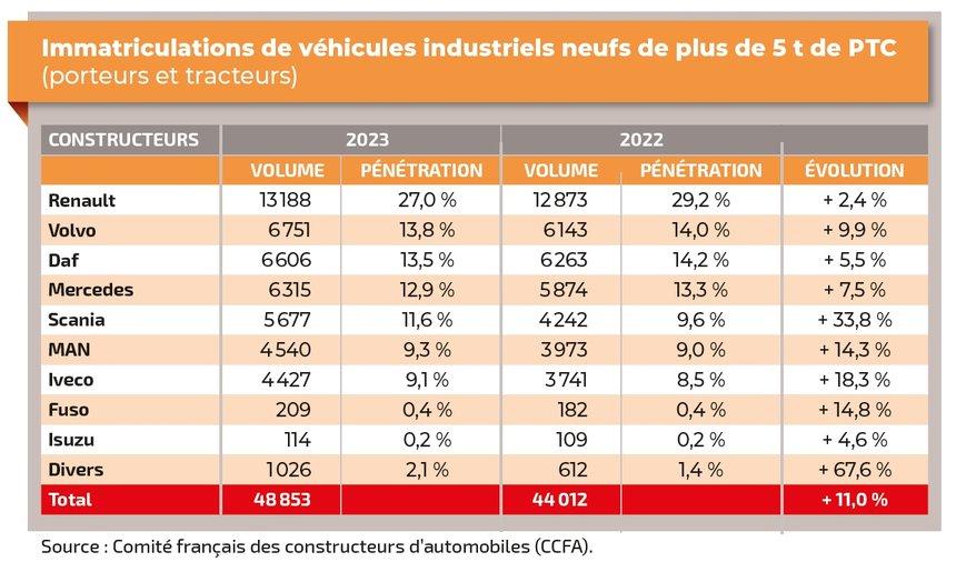 Iveco et MAN réalisent aussi des progressions supérieures à celle du marché et gagnent donc en pénétration.