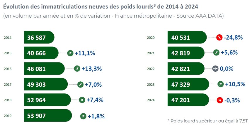 Robustesse. « Malgré un contexte global marqué par l’incertitude, le marché des VI en France continue de démontrer sa robustesse en 2024 », constate Athina Argyriou, présidente déléguée de la CSIAM. Si l’on se concentre sur le segment des poids lourds de 7,5 t et plus, avec 47 201 immatriculations, le marché affiche un niveau élevé, reflétant une dynamique soutenue par les fortes commandes de 2023 et du début de 2024.