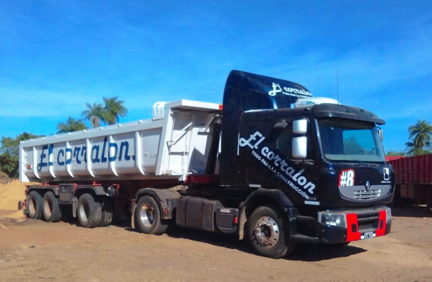 Évidemment, on trouve surtout des camions plus moderne en Argentine, comme ce Renault Premium Distribution 380. Un modèle de 2009, attelé à une semi-remorque benne à trois essieux de bonne dimension. Joliment présenté, le tracteur bénéficie de jante Alcoa. Cette version du Premium a été relativement peu demandée en tracteur en France et en Europe.