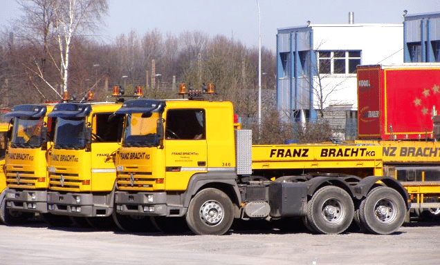 Autre Renault R, pur sucre celui-là, un tracteur R 390 6×4 aux couleurs (éclatantes) du transporteur-levageur allemand Max Goll. Un modèle impressionnant, surtout avec ses jantes Trilex, qui restera cependant une pièce unique dans le parc de cette entreprise, composé presque exclusivement de MAN. Quelques autres R 390 6×4 seront cependant vendus en Allemagne à des firmes qui les utiliseront pour des transports lourds. Le plus gros utilisateur allemand de Renault R en tracteur 6×4 sera le levageur Franz Bracht, mais avec des R 380 et R 385 ti (à moteur 6 cylindres) qu’il utilisera longtemps. Quant au R 390, rappelons que son V8 développait une puissance de 389 ch avec le bénéfice d’une suralimentation inter-refroidie.