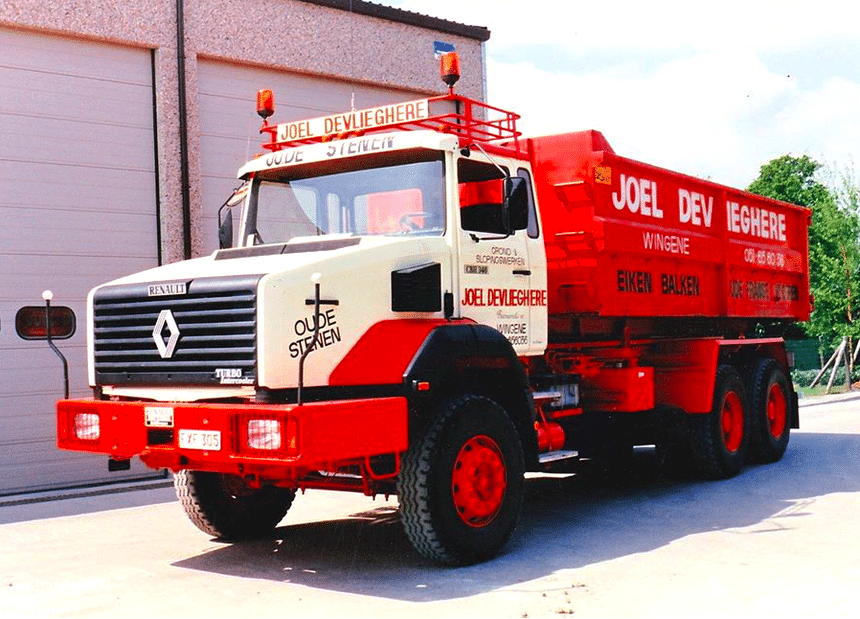 Changement de style, avec un superbe CBH 340 belge. Le CBH, disponible en 6×4 et en 6×6, a remplacé à partir de 1985 les GBH/TBH qui étaient directement issus des gammes Berliet. Ce 6×4 renforcé acceptait un PTC technique de 32 t. Il était essentiellement diffusé sur les marchés de grande exportation, mais on pouvait en trouver en France, en Espagne, en Belgique ou en Suisse.