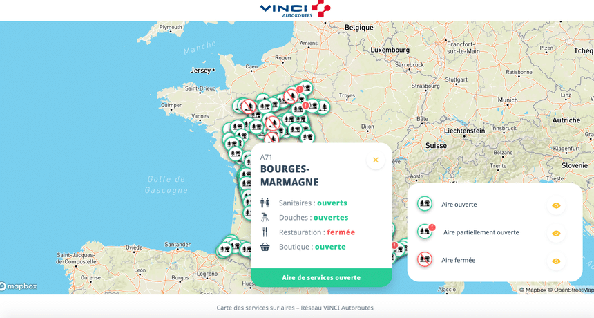 Samedi en début de soirée, ce sont ainsi 100 % des aires de services du réseau qui étaient ouvertes, dont 77 % proposent une offre de restauration chaude à emporter :