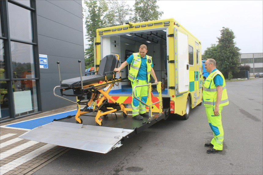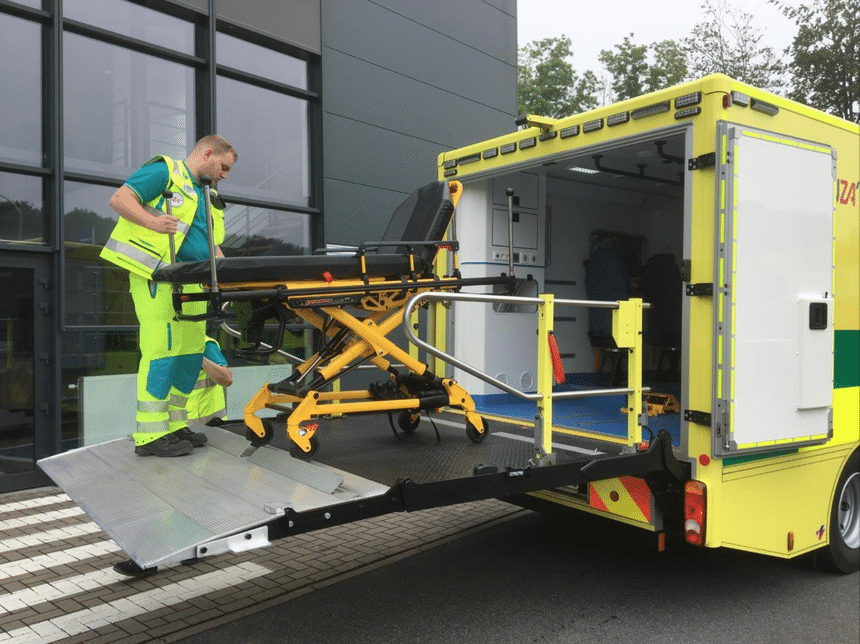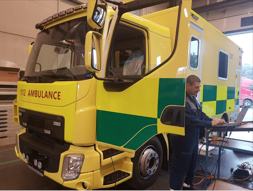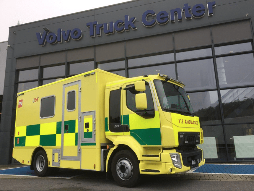 Dans le cadre d’un accord-cadre avec le gouvernement flamand, l’UZA a opter pour un camion-plateau Volvo FL, sur lequel une cellule d’ambulance suréquipée a été montée par le carrossier hollandais Visser. Le véhicule n’est toutefois pas immatriculé comme camion, mais comme ambulance. Il s’agit de la première ambulance en Belgique enregistrée comme véhicule de 12 tonnes. La tare est d’environ 8 tonnes. Le véhicule sera mis en service tant pour le transport inter-hospitalier que pour les interventions du 112, le numéro d’appel d’urgence.