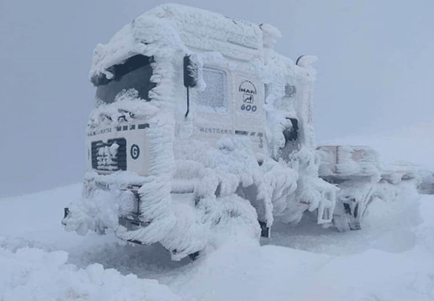 Voici donc, par ordre d’apparition, des Scania islandais immobilisés pour un moment , un MAN gelé en Sibérie et ce qui semblerait être un Mack pris dans le blizzard en Alaska. Il fait tout de même meilleur chez nous, non ?