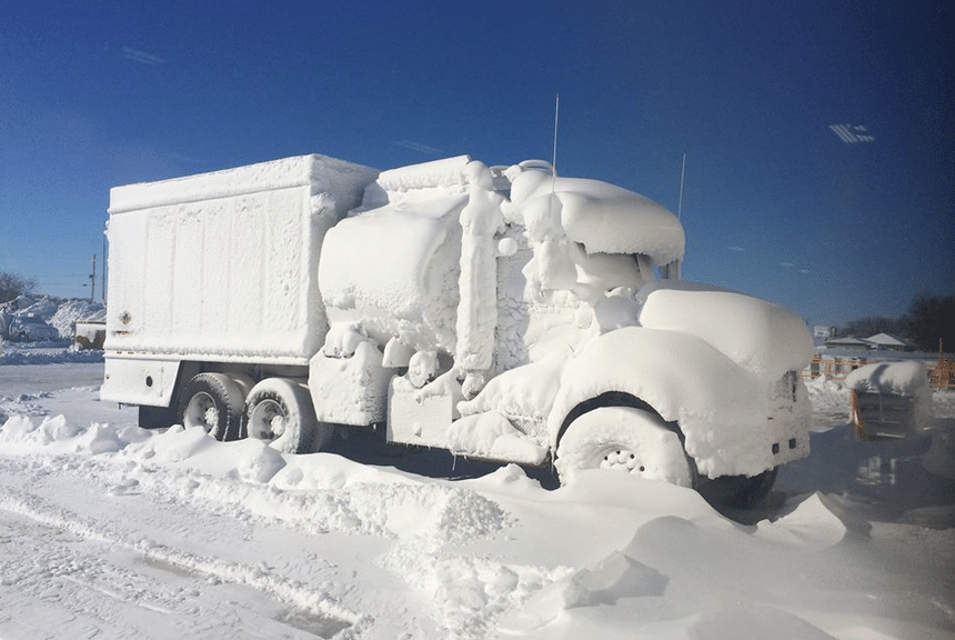 Sous leur coque de glace les camions ne peuvent alors qu’attendre des jours meilleurs.