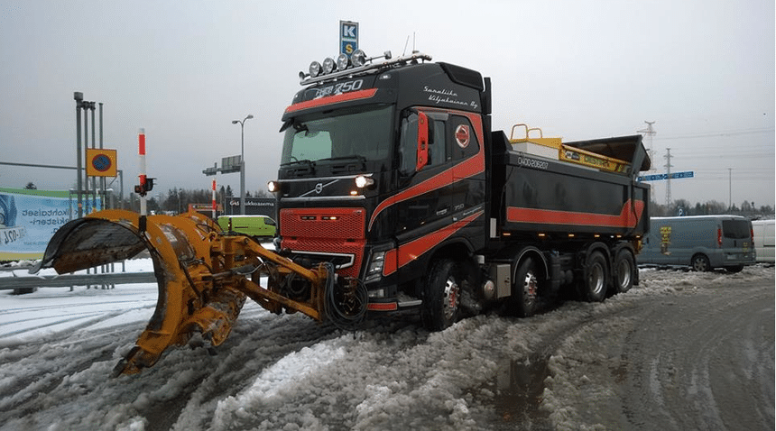 Même combat pour ces deux autres camions : un UD 6×6 (ex-Nissan Diesel) opérant au Japon, dans la région Hokkaido et que l’on n’a aucune chance de voir un jour évoluer sous nos latitudes ; et un très beau Volvo FH 8×4 au travail en Finlande, la surprise étant de le découvrir carrossé en benne et équipé pour le déneigement, alors qu’il est plutôt employé chez nous en 4×2 ou en 6×2 dans des applications purement routières.