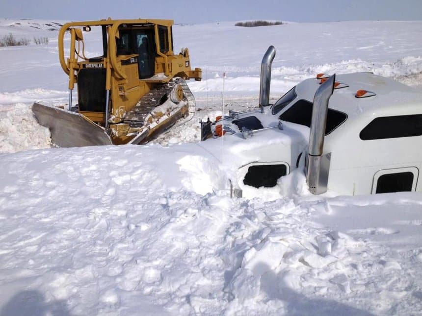 Et puis, parfois, il n’y a plus grand-chose à faire. Comme ce tracteur, piégé au Canda sous plus de 2 m de neige ou ce dumper fantomatique, totalement pris sous la glace.