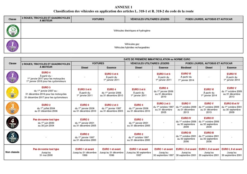 Les véhicules selon leur Crit’Air