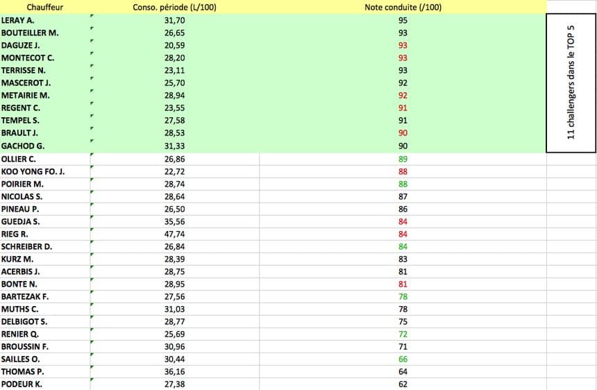 Le Challenge éco-conduite du concours Conducteur de l’année 2018 en est à sa cinquième semaine révolue. Retrouvez ci-dessous le classement des 30 candidats, qui s’affrontent jusqu’au 29 juin prochain.