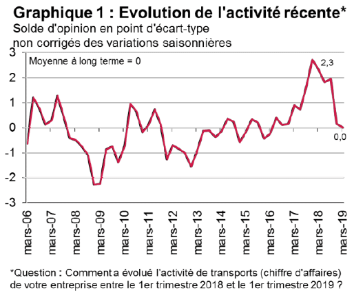 Complément d’information (cliquez sur le lien) : l’emploi a reculé dans les transports en mars 2019