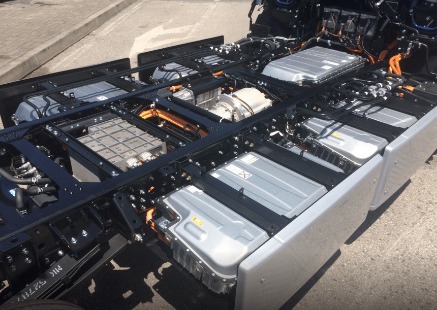 Le eCanter possède un moteur électrique à synchronisation permanente de 185 kW pour un couple maximum de 380 Nm. La puissance du moteur parvient à l’essieu arrière via la transmission standard à une vitesse. Côté énergie, il est équipé d’un pack de batteries lithium-ion d’une capacité totale de 70 kWh, avec cinq modules de 14 kWh répartis de manière équilibrée entre les essieux. Ces modules sont produits par Daimler et déjà utilisés dans les autobus hybrides Plug-In Mercedes, ainsi que dans les nouveaux utilitaires électriques eVito et eSprinter. Pesant 135 kg chacun, ils contiennent une centaine de cellules chacun et sont refroidis par liquide. Grâce à ces cinq modules, le eCanter affiche une autonomie de 100 km. En fonction de l’utilisation du véhicule, il est possible d’en rajouter un (jusqu’à 6 maximum) ou d’en enlever, dans le but de gagner en autonomie ou en charge utile. À noter que leur nombre influe aussi grandement sur le prix du camion.