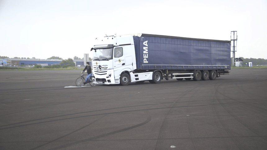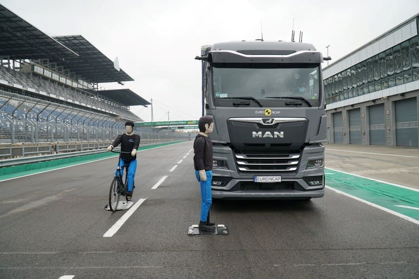 Mais les tests d’Euro NCAP vont plus loin que les exigences minimales. En conséquence, deux des premiers poids lourds testés (le S-Way d’Iveco et l’Actros de Mercedes-Benz) n’ont pas obtenu les résultats escomptés, car les constructeurs n’ont pas fourni les modèles les plus récents.