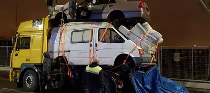 Encore une pompe à béton, une vraie cette fois, dont le conducteur s’est laissé surprendre par un terrain un peu trop meuble pour les 32 t de son 8x4.Rien de grave cependant, le camion s’est doucement…
