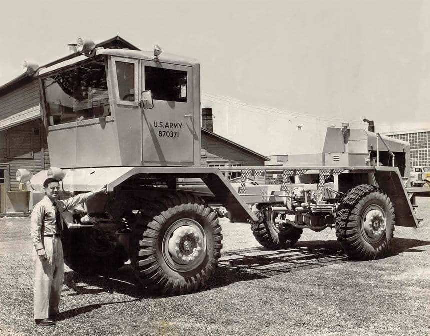 Enfin, on notera que cette architecture est utilisée depuis longtemps par Oshkosh, comme le montre cette archive, malheureusement non datée, mais qui doit remonter aux années 1950.