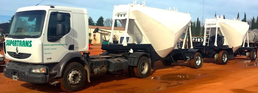 Petite curiosité, comme ça, en passant, avec ce train-double utilisé en Argentine pour du transport de ciment. La capacité des citernes n’est pas précisée, mais elle est modeste, ce qui donne une allure inhabituelle à cette combinaison que l’on associe plutôt à des semi-remorques de grande taille et de tonnage élevé.