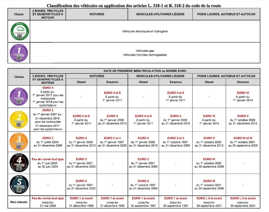 – certaines catégories de véhicules bénéficiant d’une dérogation : transports en commun, véhicules des associations agréées de sécurité civile, véhicules des établissements d’enseignement de la conduite automobile…