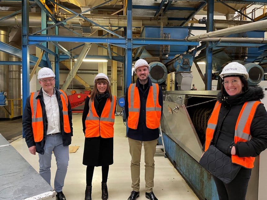 Raphaël Biscaras, responsable commercial coc100 ; Anne-Sophie Serra, chef de projet RSE et transition énergétique chez Heppner ; Clément Théroux, directeur régional Maine-Touraine de Heppner et Laure Dubuisson, gérante de STVM (de gauche à droite), le 22 mars à Chalandray.