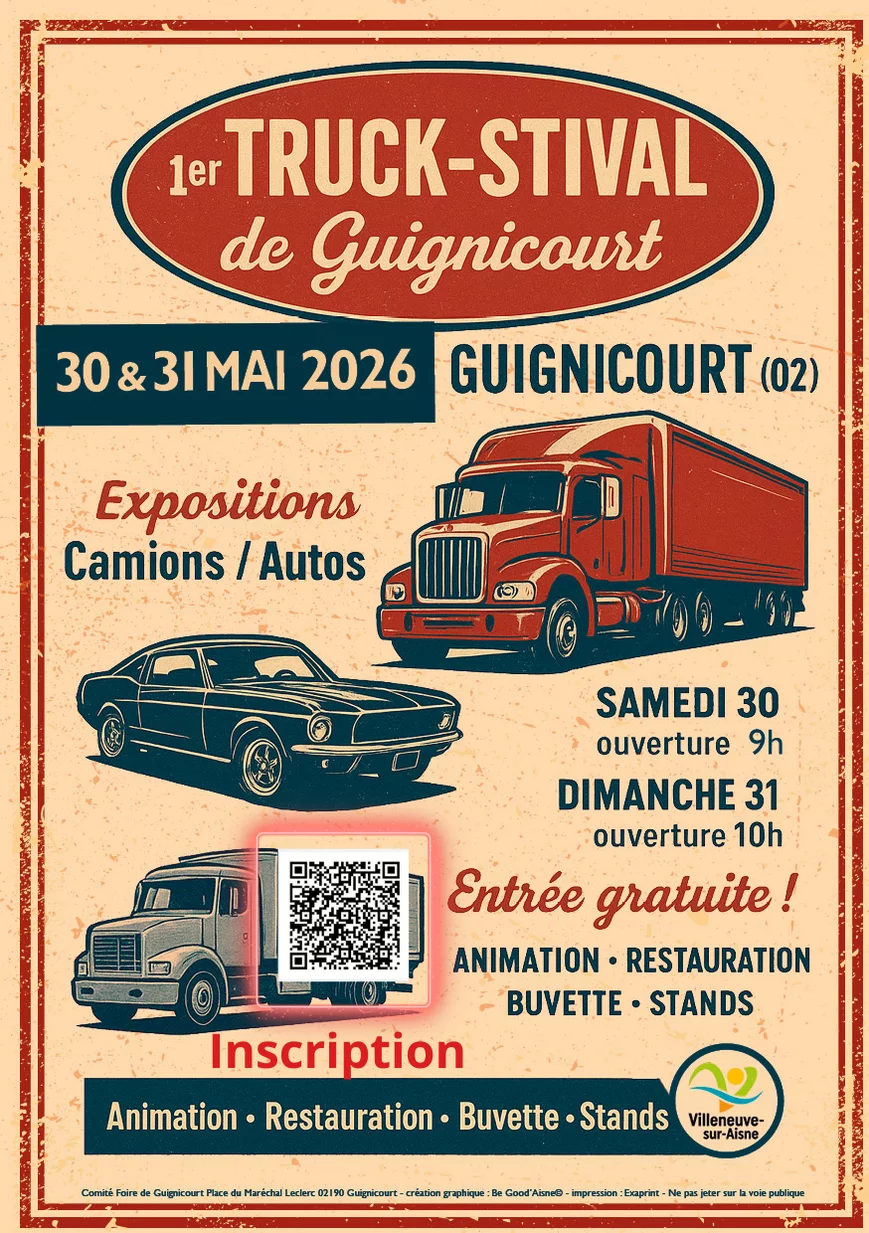 Un rassemblement de camions et d’autos est prévu dans la petite ville de Guignicourt (Aisne), les 30 et 31 mai 2026.