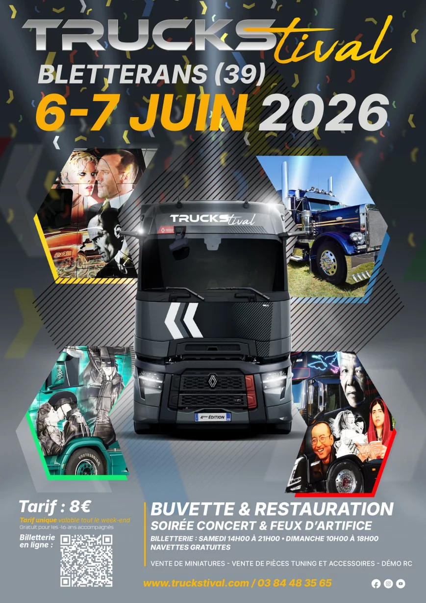 Le week-end du 6 et 7 juin 2026, la commune de Bletterans va accueillir la quatrième édition du Truckstival organisé par l'association Events Trucks Passion.