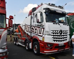 Les dépanneuses poids lourd sont bien sûr elles-mêmes des camions, qui se conduisent avec les permis adéquats. Elles sont souvent décorées, et se remarquent forcément sur la route par leurs équipements spectaculaires, même quand elles ne sont pas en activité. Dans les trucks shows également, elles impressionnent. Lors des derniers 24H Camions au Mans, l'une d'elles a fait le show, primée d'un trophée, le Coup de cœur des Porteurs. Le Mercedes Arocs 4163 8x4 du Garage Pineau, puisque c'est de lui qu'il s'agit, est un véhicule exceptionnel à plus d'un titre.