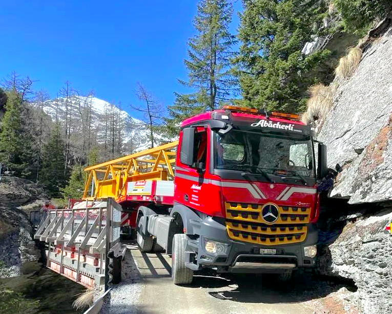 Ce camion appartient à l’entreprise suisse Abächerli Transporte, basée à Sarnen, dans le canton d’Obwald, qui réalise de nombreux travaux en montagne, donc sur des sites d’accès souvent problématique pour lesquels ce MAN 4x4/4 est indispensable.