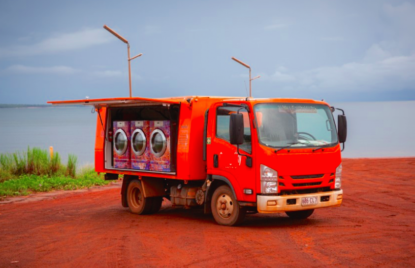 Petit camion et grand mystère. La question ne concerne ici, ni la marque (Isuzu), ni le pays (l’Australie), mais la fonction de ce camion qui dévoile l’étrange contenu de sa carrosserie : machines à sous itinérantes, sonorisation de rave party, éclairage de chantier ? Réponse dans quelques jours...