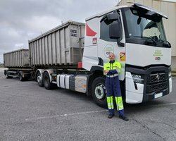 Au volant d'un porteur-remorqueur benne Renault T 480 6x2 équipé d’un bras hydraulique, il transporte du coproduit d’origine animale. Après abattage, une partie non consommable des animaux est revalorisée afin de réduire le volume de déchets. Un transport discret qui se fait de nuit. Guillaume traverse ainsi feux allumés les routes du Grand Ouest.