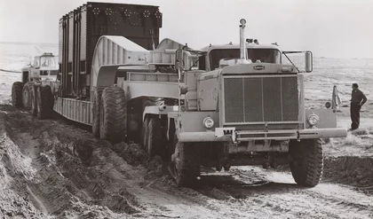 La posture est impressionnante ! Elle illustre, de manière spectaculaire, l’exceptionnel débattement de l’essieu avant du Scammell Constructor. Un 6x6 lourd, initialement conçu pour évoluer sur des terrains…