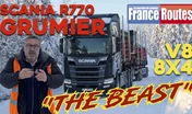 Cet ensemble tracte une pelleteuse, il est chargé à environ 50 t. Là encore, sur cette pellicule de glace saupoudrée de neige glissante, l'usage de la suspension pneumatique s'avère décisif. Prochain épisode, jeudi 9 mars avec un camion électrique !